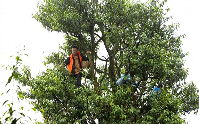 德隆镇茶树村的茶农手挎竹篓,穿梭于茶树间采摘新叶。通讯员 罗川 摄