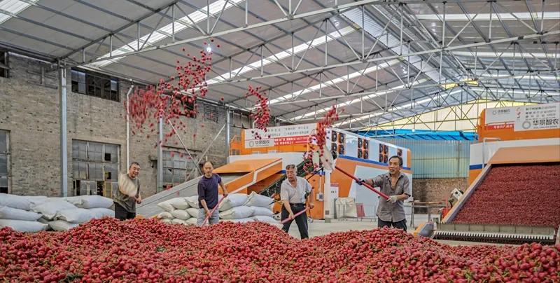 南川区银盘金棱蔬菜专业合作社工厂里,工人正在烘干成熟的“草莓椒”。通讯员 彭应忠 摄