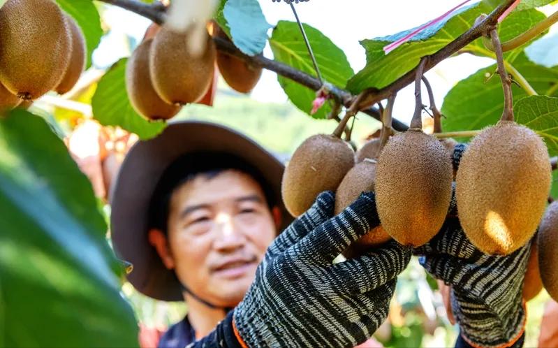 9月7日,大观镇铁桥村猕猴桃基地里,颗颗饱满的猕猴桃挂在枝头,果香四溢。通讯员 罗川 摄
