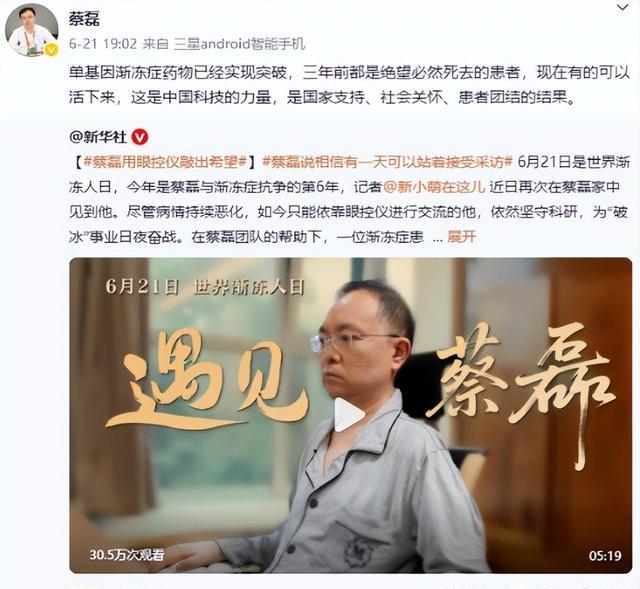 今年3月,他彻底说不出话,AI语音却第一次用他自己的声音开了口:“大家好,我是蔡磊,今天不上链接,上希望。