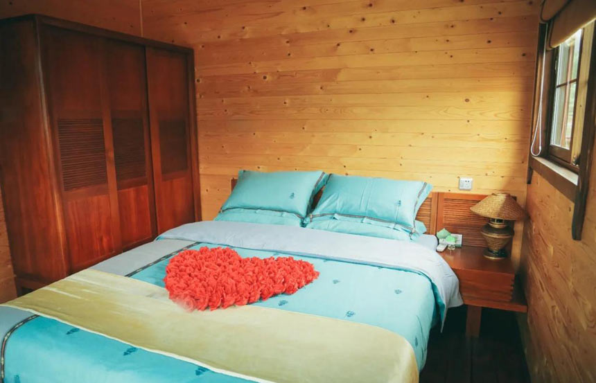 一走进酒店,仿佛穿越到了马尔代夫的海岛风情中!酒店总共有12间方形木屋结构的房间,每间都配备了独立卫生间、单人淋浴房、空调、WiFi和电视,超级贴心~而且,房间设计融入了独特的东南亚风格,让人瞬间感受到休闲与品质并存的轻奢体验!