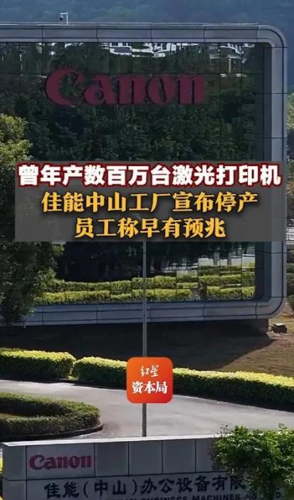 2025年11月21日,佳能中山工厂正式宣布停止生产经营,说是因为激光打印机市场持续萎缩,加上国产品牌快速崛起,经营困难已经没法扭转。