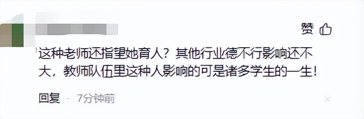 这种老师还指望她育人?其他行业德不行影响还不大,教师队伍里这种人影响的可是诸多学生的一生!