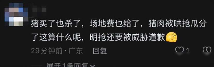 团队一看情况不太对劲,担心事情闹大出问题,就做了让步,当场支付了1200元场地费和740元桌椅费,加起来一共1940元,结果钱一付出去,围观的人一下子全冲上来,把剩下的肉都抢光了,现场没人维持秩序,也没人上前阻拦,整个过程被人拍下来传到网上,第二天视频就火了,很多人看了非常生气,说这哪是办宴席,根本就是拿刀要钱,还指责这个村子风气不好。