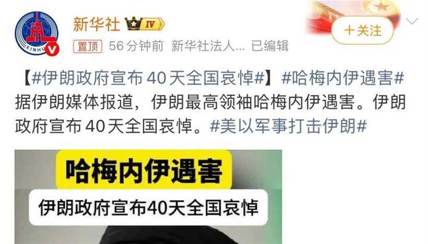 伊朗内阁随即宣布,自3月1日起,全国进入为期40天的哀悼期,并实施7天的公共假期,国家行政与社会活动几近停滞。