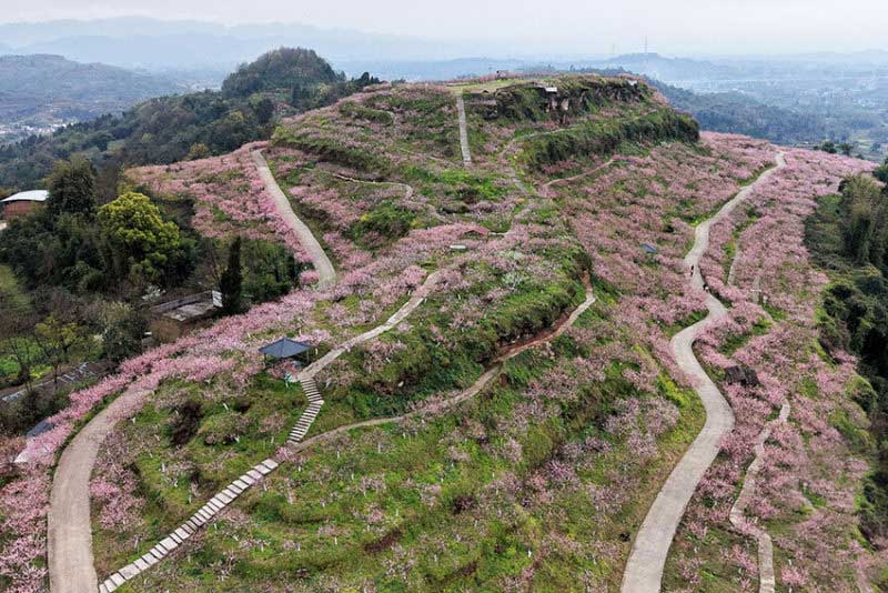 早春三月,重庆市铜梁区土桥镇六赢山千亩桃花竞相绽放,迎来最佳观赏期。十里粉黛顺着山势层层铺展,与青山、田园相映成趣,勾勒出一幅春日画卷。缤纷春色吸引游客前来踏青赏花,漫步山间,沉浸式感受山野烂漫春光。