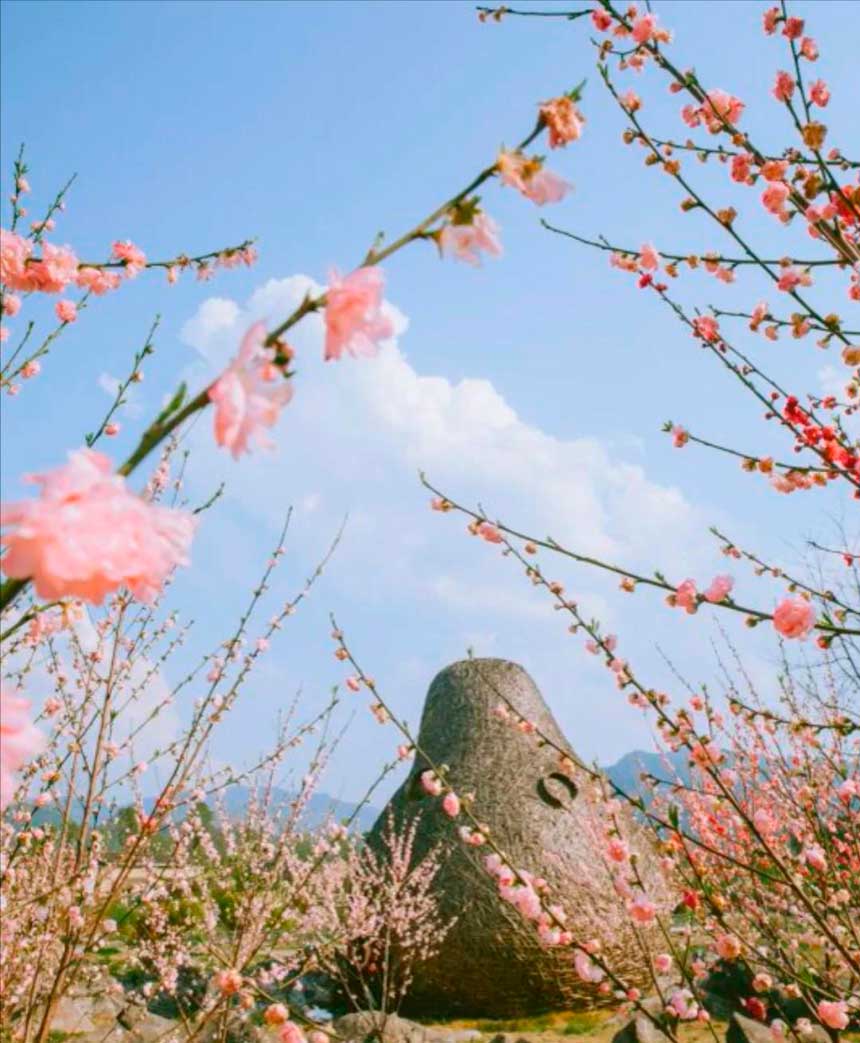 桃林是主角,花期时一簇一簇贴着枝头,近看像小灯泡。