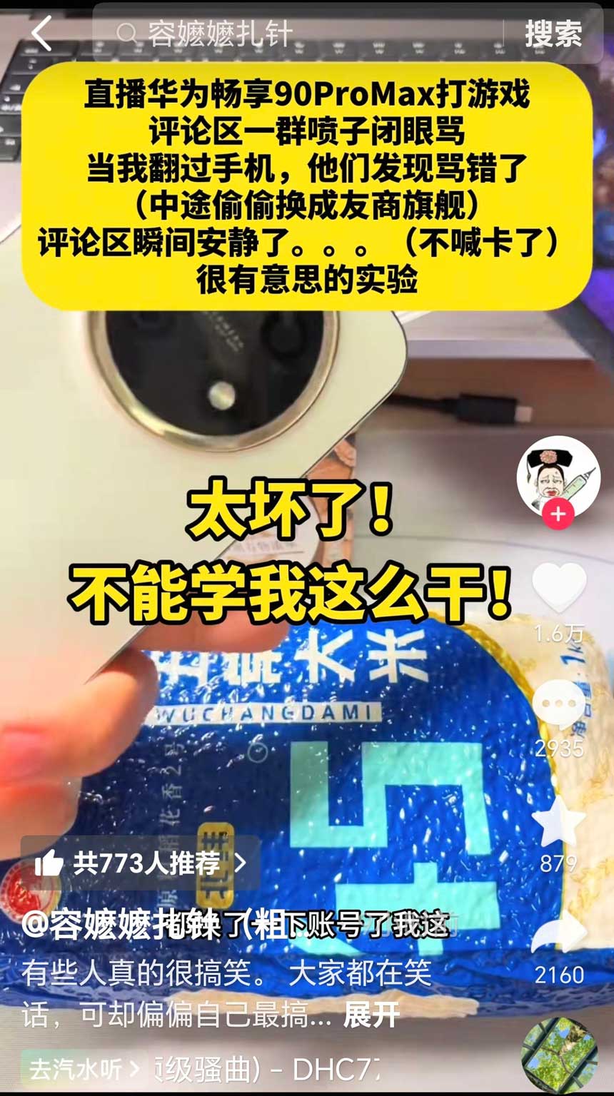该梗源于一位博主在直播中测试华为畅享90 Pro Max玩《王者荣耀》时,弹幕普遍指责“卡、插帧”。但当博主将手机翻转露出背面Logo,观众发现并非华为手机后,弹幕立刻安静,不再抱怨卡顿。这揭示了一个关键现象:用户对设备流畅度的评价,往往受品牌标签影响,而非真实体验。