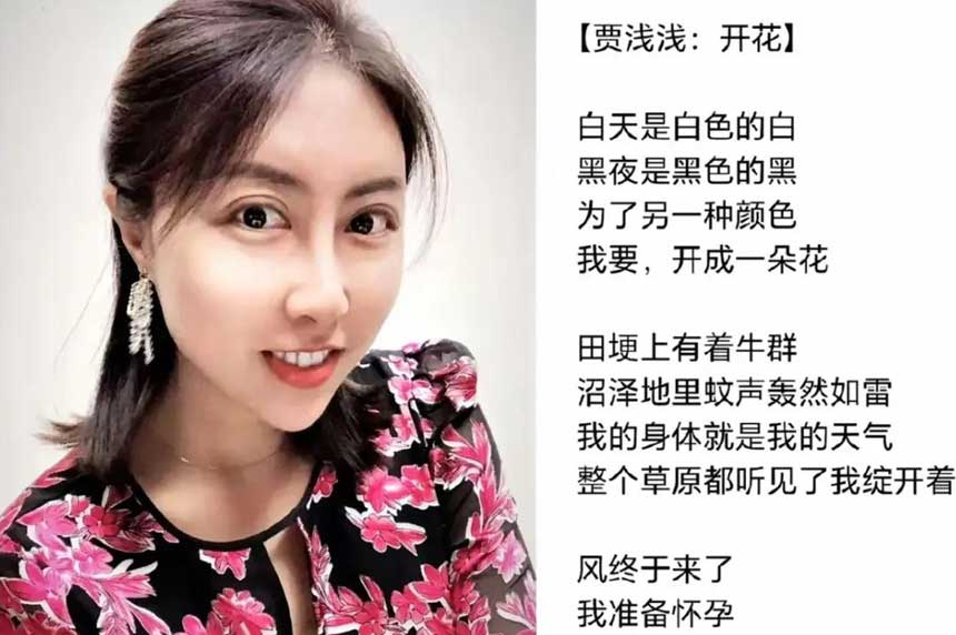 普通人就算不懂现代诗,也知道诗歌讲究意境、美感、文字功底,哪怕是口语诗,也得有思想、有韵味。可贾浅浅的诗,完全颠覆了大家对文学的认知。