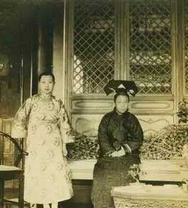 接下来是溥仪的妹妹们——二格格和三格格。二格格金韫和三格格金蕊秀,看起来清秀可爱,姿态优雅。 这张照片拍摄于1870年,后期经过了彩色处理,展现了那时清朝生活的繁华与贵气。