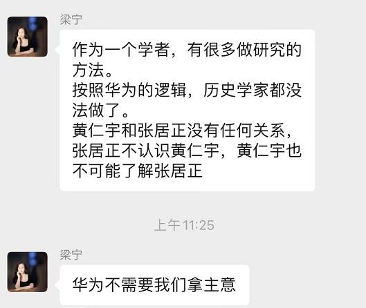 对此,得到App课程《产品思维30讲》主理人梁宁评论称,“作为一个学者,有很多做研究的方法。按照华为的逻辑,历史学家都没法做了。黄仁宇和张居正没有任何关系,张居正不认识黄仁宇,黄仁宇也不可能了解张居正”。