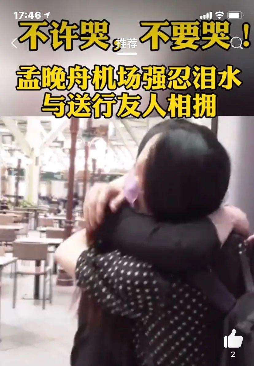 登机前,孟晚舟强忍泪水,回头拥抱常驻加拿大并帮助过她的朋友们:“不许哭,不要哭。”