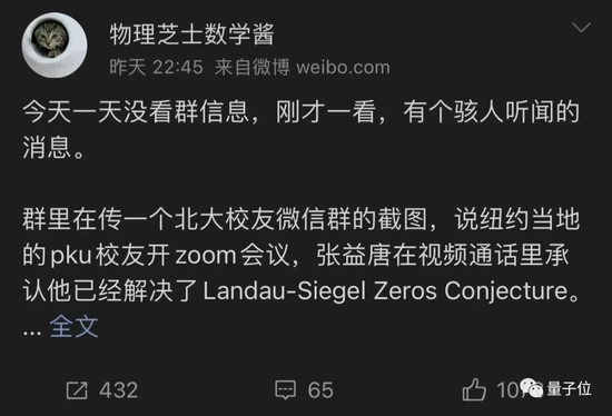 至于具体证明了什么,还需要等待张益唐本人的正面回复了。