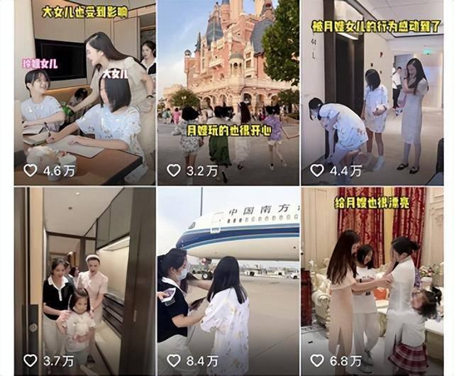 赵女士在社交平台发布的视频多为与月嫂相关的日常,包括月嫂照顾孩子、给月嫂过生日、和月嫂一起做公益、带月嫂出去玩、给月嫂送礼物等,获得大量网友点赞。