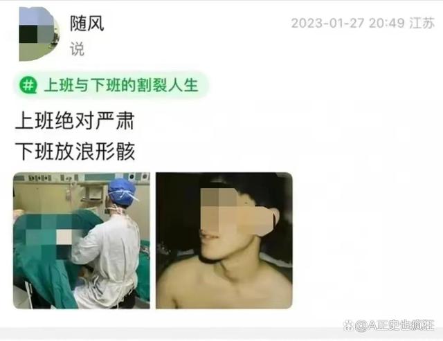 原来,他之所以会发表这样的图片和文字,是因为参与了一个关于上班与下班的割裂人生的话题讨论,他可能是想通过反差比较大的两张照片,来博取大家的眼球,没想到却翻车了,把自己推到了风口浪尖上,看了照片的网友表示:你上班严肃不严肃我们不知道,看样子你下班之后确实是挺浪的。