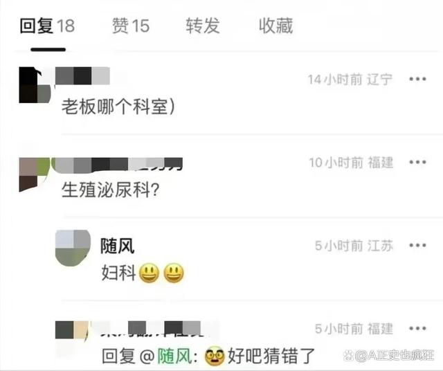 有人还在下面给他留言:问他是不是生殖泌尿科,他竟然还好意思回复是妇产科。