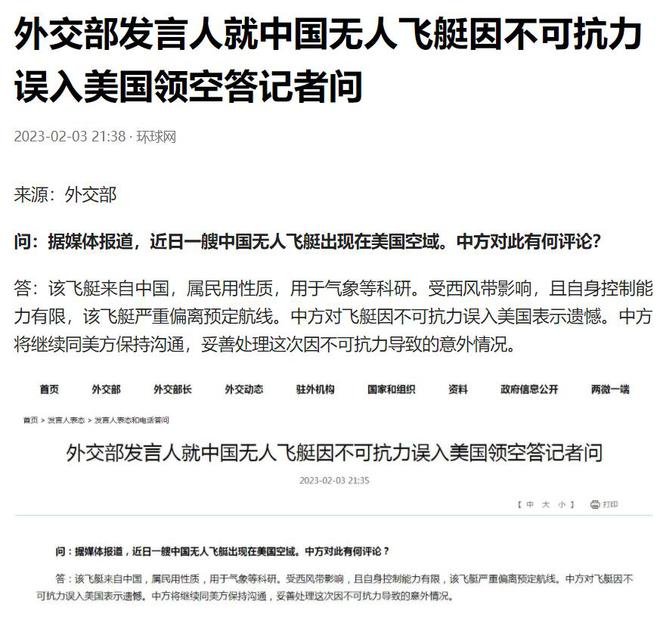 中国飞艇因不可抗力误入美国领空,这个消息一开始还以为是美国造谣生事,以为是假新闻。我们今天看到外交部发言人对此事进行解释,进行评论,才确认这个事情是真实的。