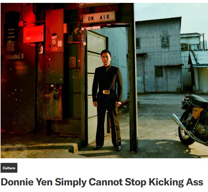 这篇专访同时发布在英国版《GQ》杂志上,题为“不老的香港动作英雄”,还登在了《GQ》美国官网的首页,外标题换成了“甄子丹还是那么牛”。