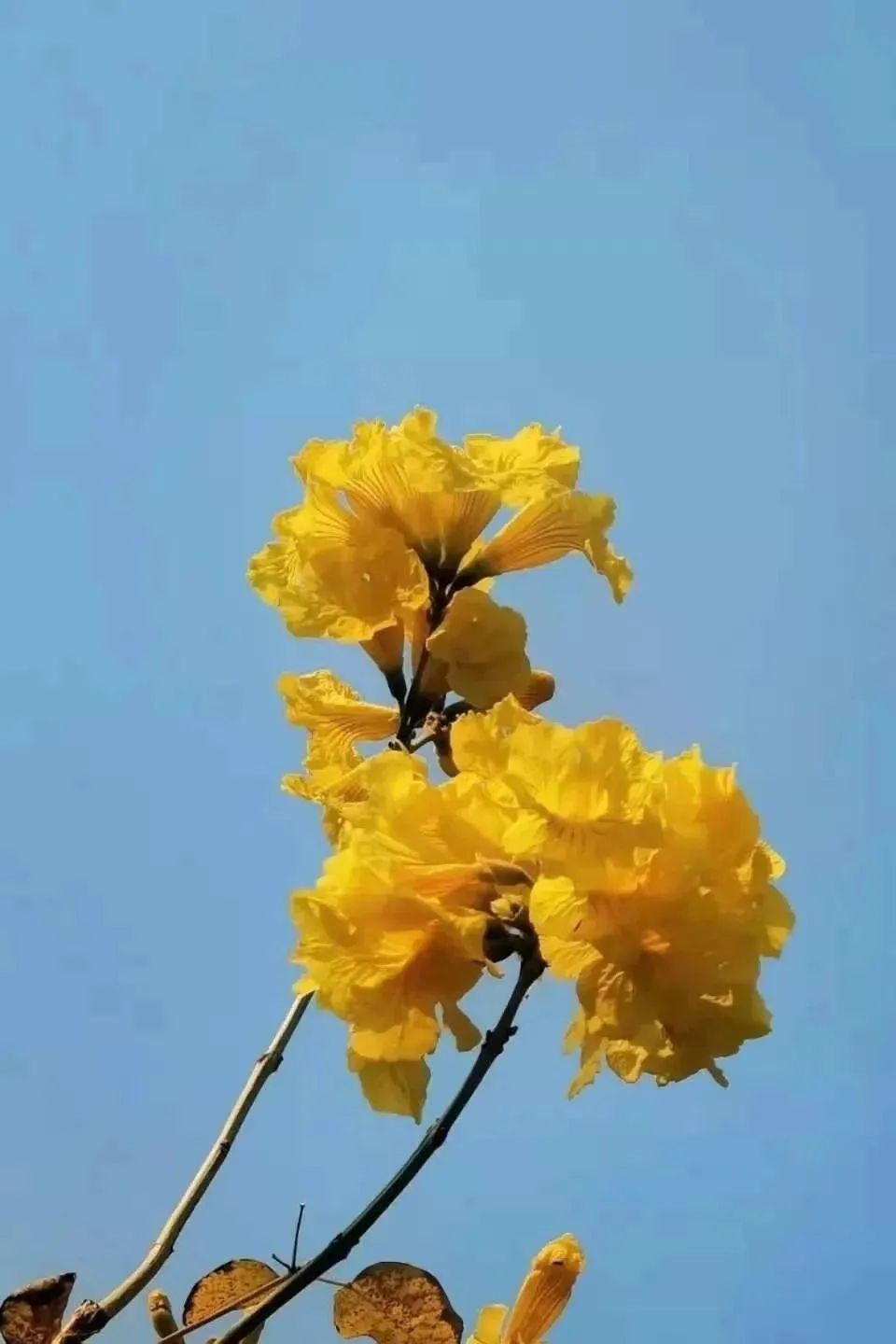 花风铃木又叫毛黄钟花、黄钟木为紫葳科风铃木属的落叶乔木植物黄花风铃木是世界著名的观赏树种常作为优良的行道树也可种植在庭院、公园、住宅区等地四季景象各异具有春华、夏实、秋绿、冬枯的独特风韵被冠以热带樱花的美称