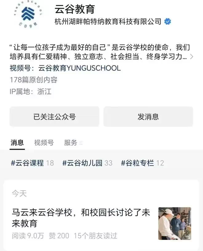 1. / “马云回国”刷屏, 阿里股价短暂拉涨 / 3月27日,云谷教育官方视频号和公众号都刊发了“马云来云谷学校,和校园长讨论了未来教育”的视频和文章。