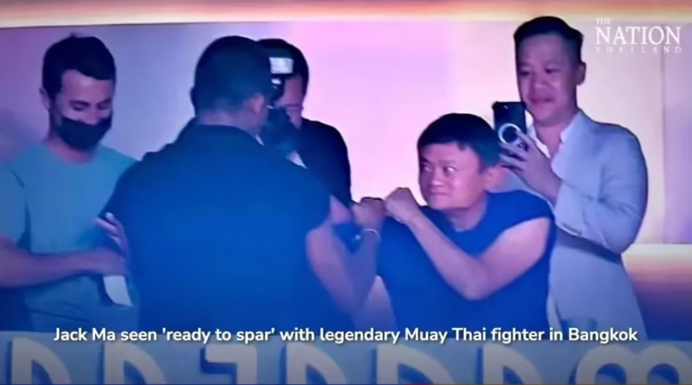 另据泰国《民族报》的报道,今年1月5日,也就是马云“再退休”的两天前,他在泰国曼谷Rajadamnern泰拳赛馆观看比赛。在媒体的镜头中,他好像要跟泰国传奇泰拳选手班差迈(Buakaw Banchamek)过招,就像拍泰国版的《功守道》。