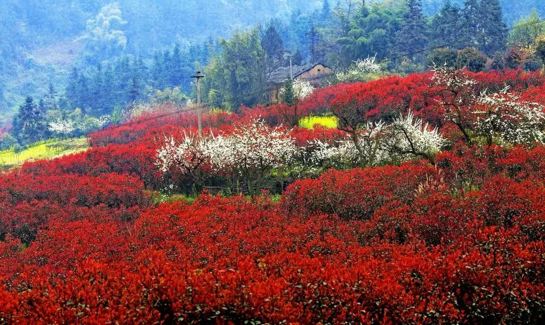 春天,泥土的清香和花儿的芳香弥漫在山间,让人沉醉,青瓦白墙的农家小屋在红枫的掩映下若隐若现,这里隐藏着一个独具魅力的山间红枫园----巴南区安澜镇松木嘴红枫园。