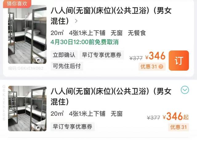 记者在多个预订平台搜索发现,近期,泰山周边的住宿房源较为紧张,有的酒店甚至推出了八人间、十人间(男女混合床位)住宿。记者查询发现,八人间的房型平时价格在150元左右,五一假期,涨到了340多元。记者采访该酒店了解到,300多元还只是一个床位的价格。