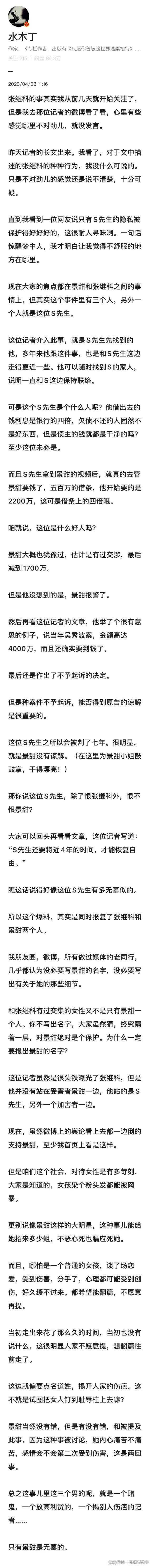 张继科、S先生、调查记者李先生,每个人都应该向景甜道歉。