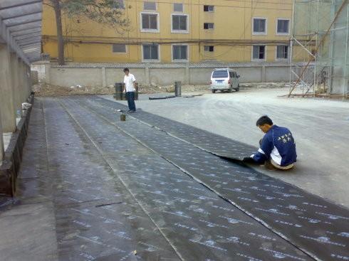 其次,进行涂膜施工,之后铺设高分子防水卷材,这一项最为重要。要注意屋顶坡度,防水卷材的搭缝及檐沟,管道口、雨水口处的局部防水布处理。如遇女儿墙时,应将卷材沿墙上卷,高度应控制在250mm之下,并用1:3水泥砂浆做坡水。凡管道等伸出屋面的构件必须在屋顶上开孔时,为了防漏水应将卷材向上翻起,抹以水泥砂浆或再盖上镀锌铁皮起挡水作用,泛水高度不超过200mm。
