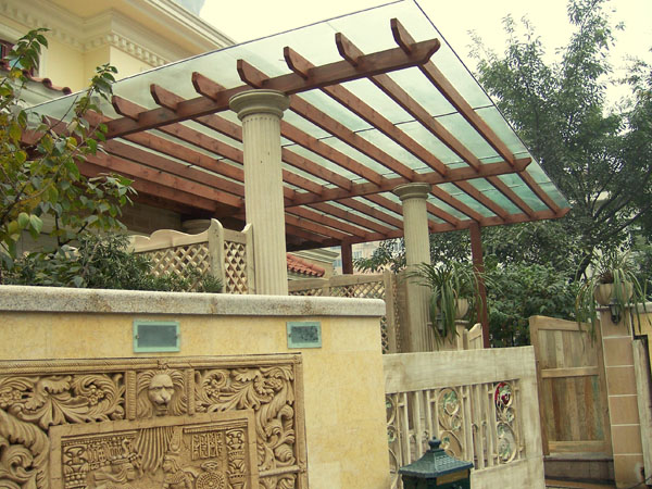 3、阳台上设计防腐木花架一定要考虑周全。对于阳台这种空间不是很大的场所,首先需要考虑到自己家阳台的面积有多大,另外一个重要的问题就是阳台的承重能力是多少,根据这两个条件选择合适的防腐木花架一般不会出现什么问题。多数情况下防腐木花架设计为正方形,这种情况会使用两根或者大于两根的主梁为支架,所以在设计的时候还需要考虑这几根主梁能否支撑起整个花架。
