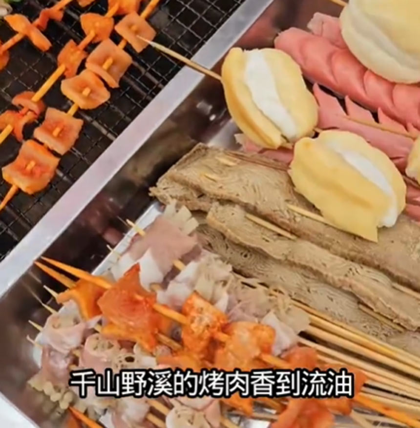 千伞野溪离重庆一小时达到的玻璃水 玩水地 重庆1小时,秒变野孩子!玻璃水沟钓蟹狂欢,星级酒店躺平享受,吃玩住全包!冲!千伞野溪的49.9元单人烧烤套餐自助随便吃,肉类和饮品都很丰富,值得一试。