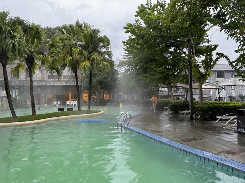 重庆威特卡丝东温泉园区自有温泉已有600多年历史,泉水内富含氡、氟、锶、锌、锂等40多种微量元素,具有医疗保健功效,内有大小不同的50多个原生态温泉泡池及功能池和6间独立的木屋温泉,温泉可同时接待400人左右。温泉服务中心的休息区还设有棋牌室、足疗,搓背等服务,顾客在这里能体验到远离城市喧嚣的放松和享受,是公司高层聚会、白领休闲的最佳选择。山林里还分别设有男女温泉裸浴泡池,泡池之间大量采用绿化和天然石材自然分隔,枝叶扶疏,人影隐约,只闻其声,不见其形,池与池之间互不相通,充分保持了每个泡池的私密性和独立性。真正做到了天人合一,山水合一。