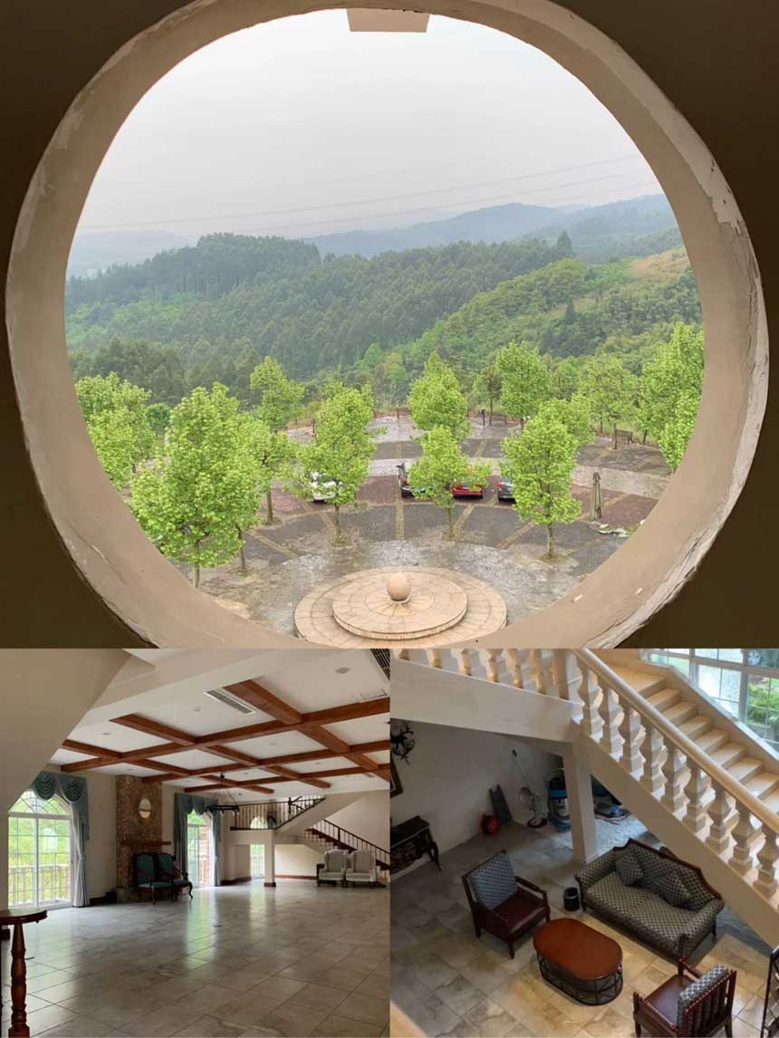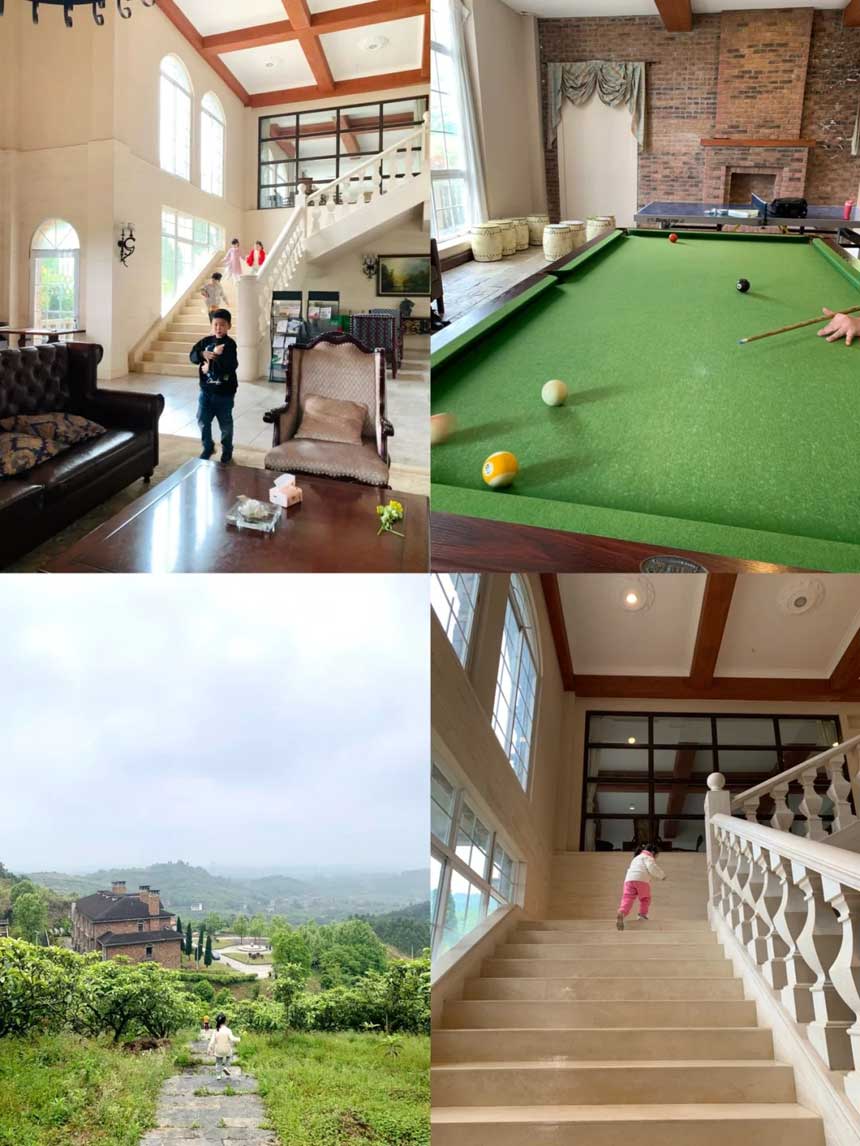 一座外观十分童话的城堡, 居然就在璧山天一农庄 江北过去差不多40分钟即可,初见第一眼就觉得很好看 周围也是一片绿意~ 旁边一座山都种着枇杷这座城堡主要是餐饮与棋牌娱乐的地方 入住的房间在城堡后面两栋 每层大概六七间大床/标间。 房间干净整洁,空气特别好~这边可以点餐,也可以选择三餐一宿的方式,成人260元~据说节假日和平时都一样,所以想五一出行的赶紧预定。1.2米以下的宝贝不收费