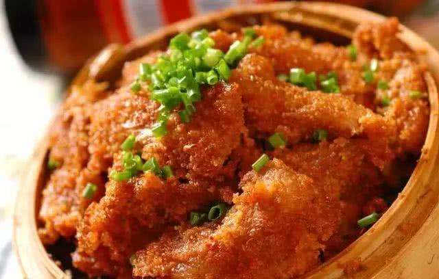 粉蒸肉用的是最好的胛子肉,四指宽的肥膘,经过长达2个小时蒸制过程,肥而不腻,入口即化。