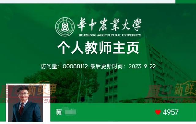 华中农大再通报:初步认定黄某某存在学术不端行为,已停职