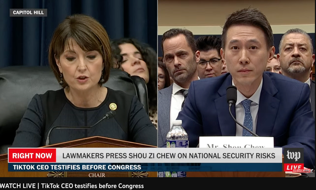 3月23日,字节跳动海外短视频平台TikTokCEO周受资参加主题为“TikTok:国会如何保护美国数据隐私,保护儿童免受网络伤害”的美国众议院能源与商务委员会听证会...
