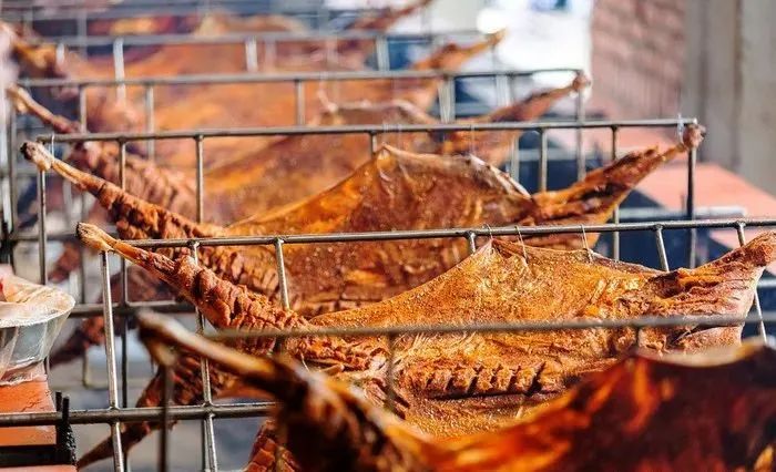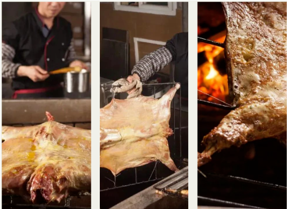 这里的烤羊至今十多年历史,一直秉承渝派烤全羊理念,传承人工慢烤工艺。在选料、烤制火候、烤制工艺及调味等每一步研精细磨,烤制七八分熟时,便需要在羊身和羊腿上打上花刀,并撒上特制烤料,保证每一块羊肉入味。除此之外,这里还有羊肉汤锅,烤鸡、烤兔、烤红薯等美食。