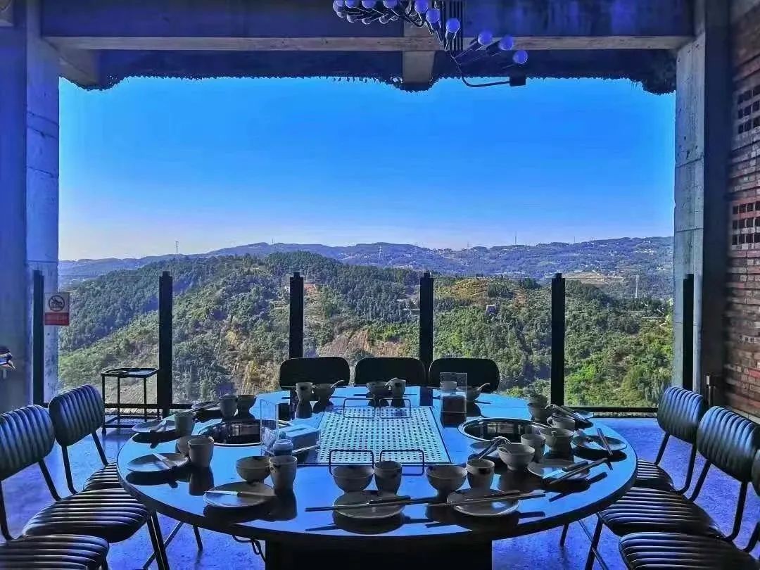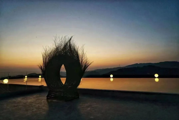 斗碗寨海兰云天烤羊位于木耳镇斗碗寨旁,餐厅屋顶有一个像无边泳池一样悬崖眺台,傍晚的景色最是迷人,苍劲大树上那弯清辉的明月,绯红的落日映入碧波之中,只需一眺便奔涌入眼。这片悬崖峭壁上辟出的清净地,在夜幕下显得遗世而美好。