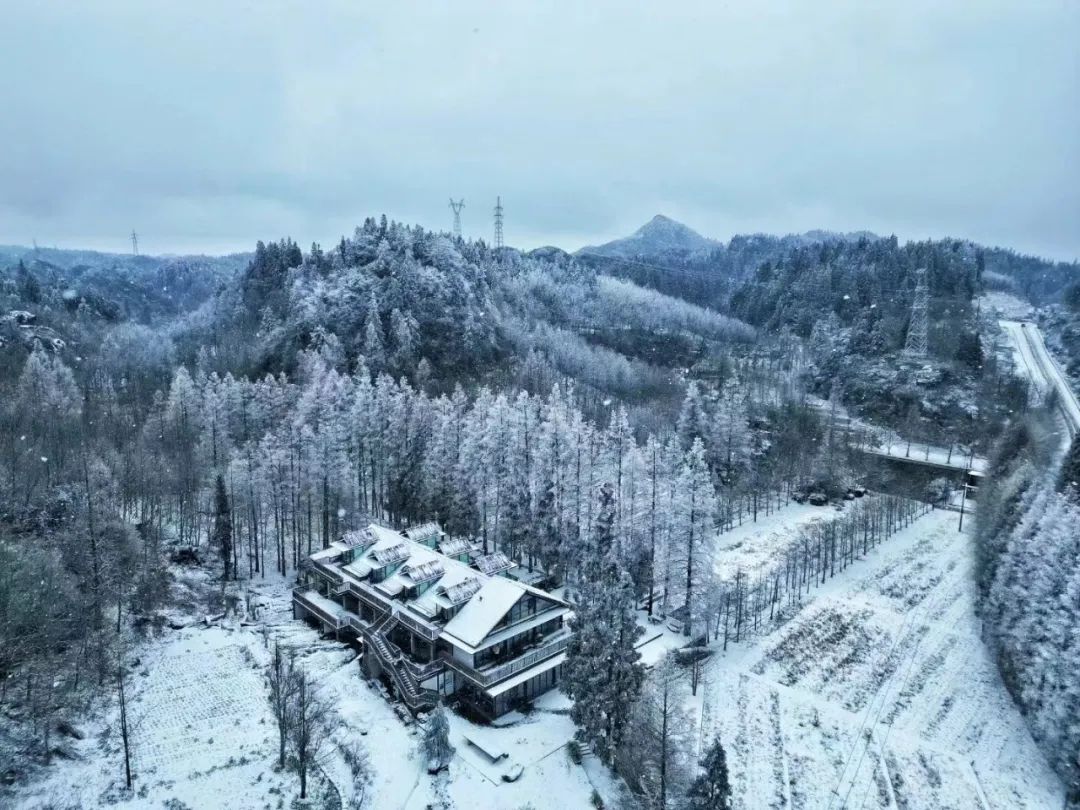 当今年的第一场雪终于落在重庆的时候,我便开始驱车深入山王坪的心脏,探寻重庆最美的雪景民宿。在杉语,我找到了冬天的答案。雪花轻轻覆盖着每一寸土地,木屋在雪中若隐若现,它们是否也在静静诉说着自己的故事?这里的每一场雪,是否都是对大自然最深情的诠释?