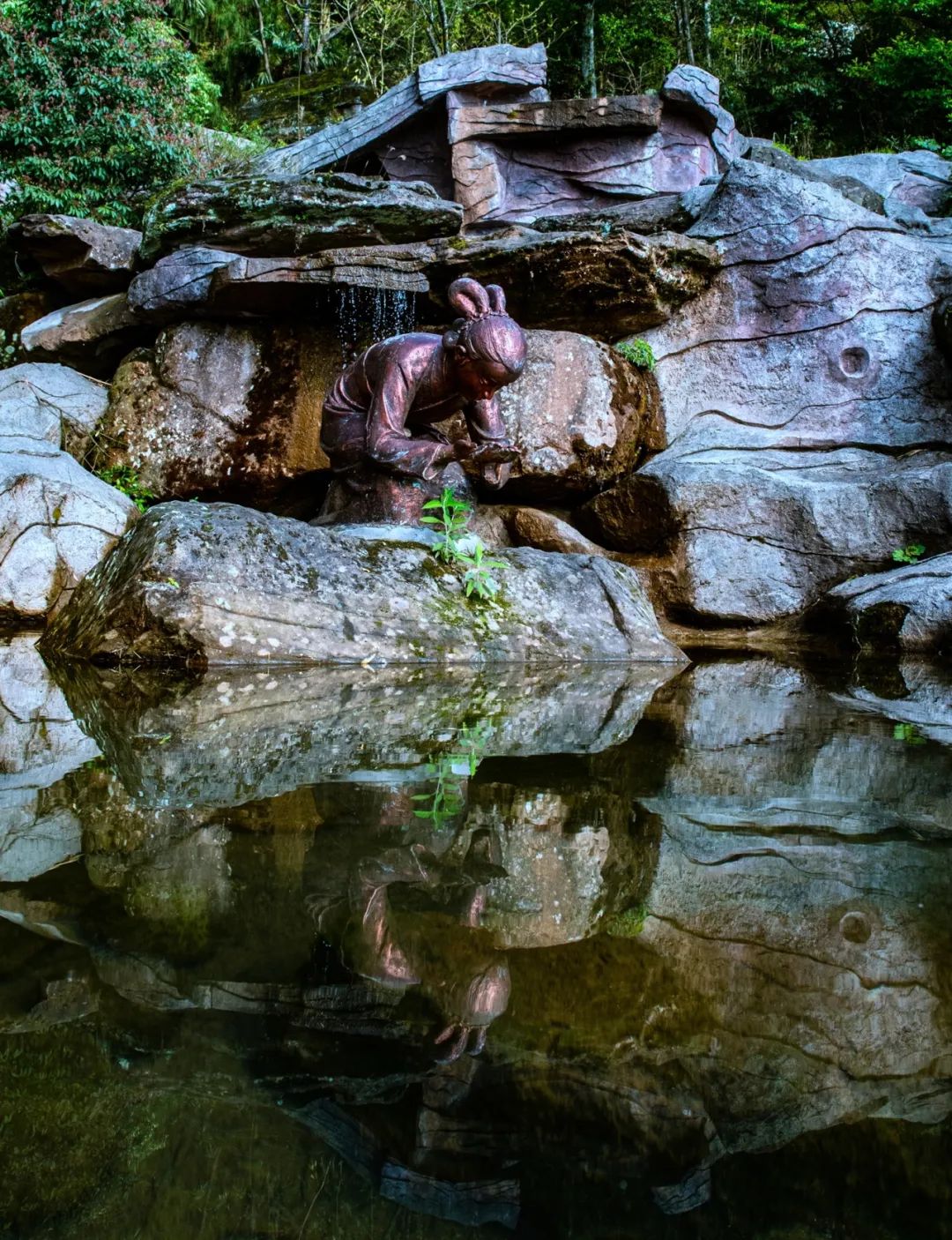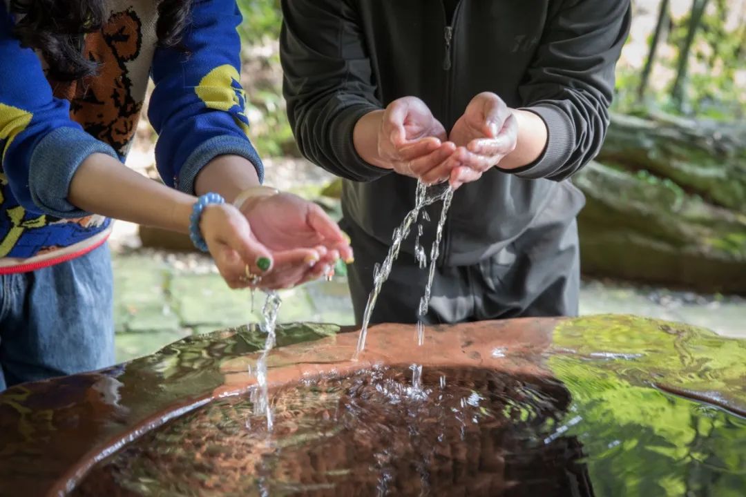 陈郎饮泉醒来,如大梦一场。夫妻俩历经动难后更觉生之可贵,恩爱更甚。一年后两人喜得龙凤胎,自此儿女双全,合家圆满。陈氏夫妇感念上苍,掘泉为井,取名“双生泉”,引水筑堰,名日青堰。青山、泉水赋予了村落生生不息的生命之力,村民请来佛匠在山岩上雕刻出山王菩萨,终年香火供奉。青堰之名由此而生。陈氏辞世后,山崖上悄然间长出一块形如母亲、两块状如双生婴童的岩石,后世人称之“双母石”与“双子石。传说中,这是陈氏化身磐石,世代守护这个山青水灵的地方,泉佑青堰,成双成对成好事。此后,青堰双胞胎频繁诞生。