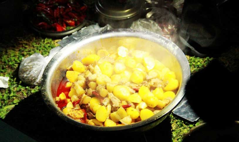 毛主席说过:自己动手,丰衣足食。美食的产生,除了领队、大厨的安排以外,还要靠大家的齐心协力,分工合作,洗菜、择菜、切菜,都有美女、帅哥抢着做。