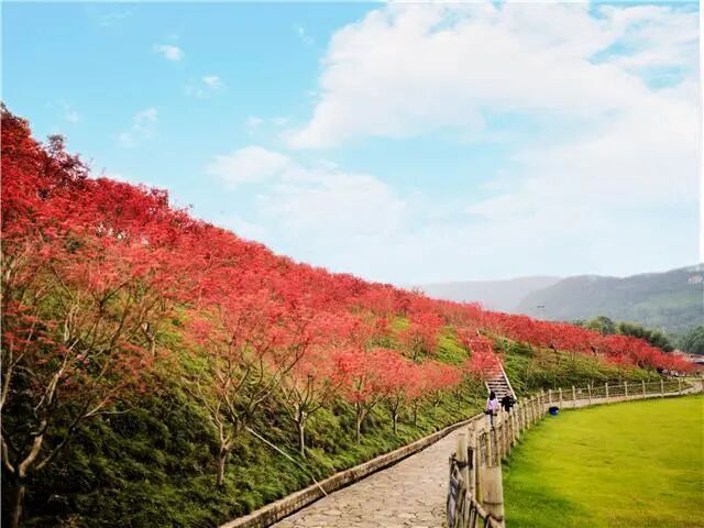 这里除了看上万株红枫还随处可见玩乐设施很适合亲子游涵盖各种年龄段的游玩设施大小朋友在这里都能玩得很快乐
