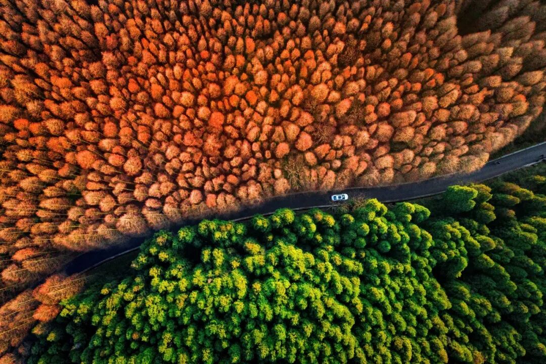 霜降之后,山王坪的水杉林开始变黄,与常绿的柳杉林形成“平分秋色”的奇特景观。