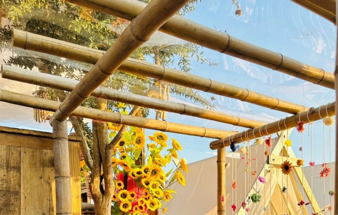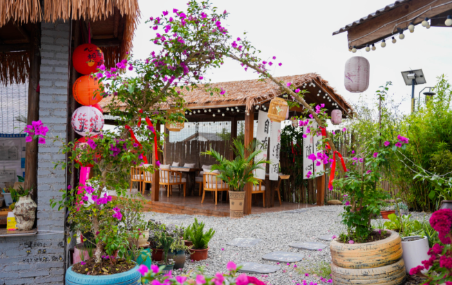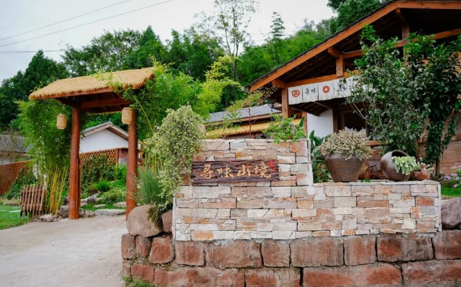这里是大渡口版“有风的小院”古朴雅致的院落和清新自然的风格吸引着往来游客 秋千、月亮、少数民族风情的挂饰摆件......每个角落都充满设计感点一杯焦糖拿铁坐在轻轻摇晃的竹藤椅上看山间云霞流转立马带你穿越到大理