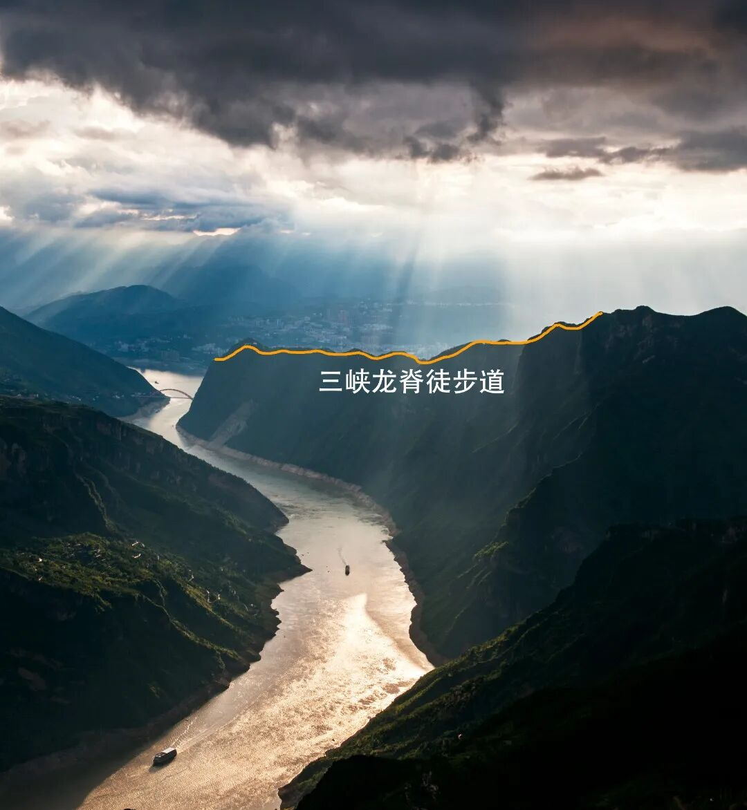 三峡龙脊形似静卧巨龙的奇特山峦其高处形如昂首的龙头被称为"登龙峰"也被誉为"中国最美徒步路线"之一 徒步三峡龙脊可360℃无死角欣赏巫峡壮丽景色左眺长江波澜壮阔右瞰群峰巍峨耸立