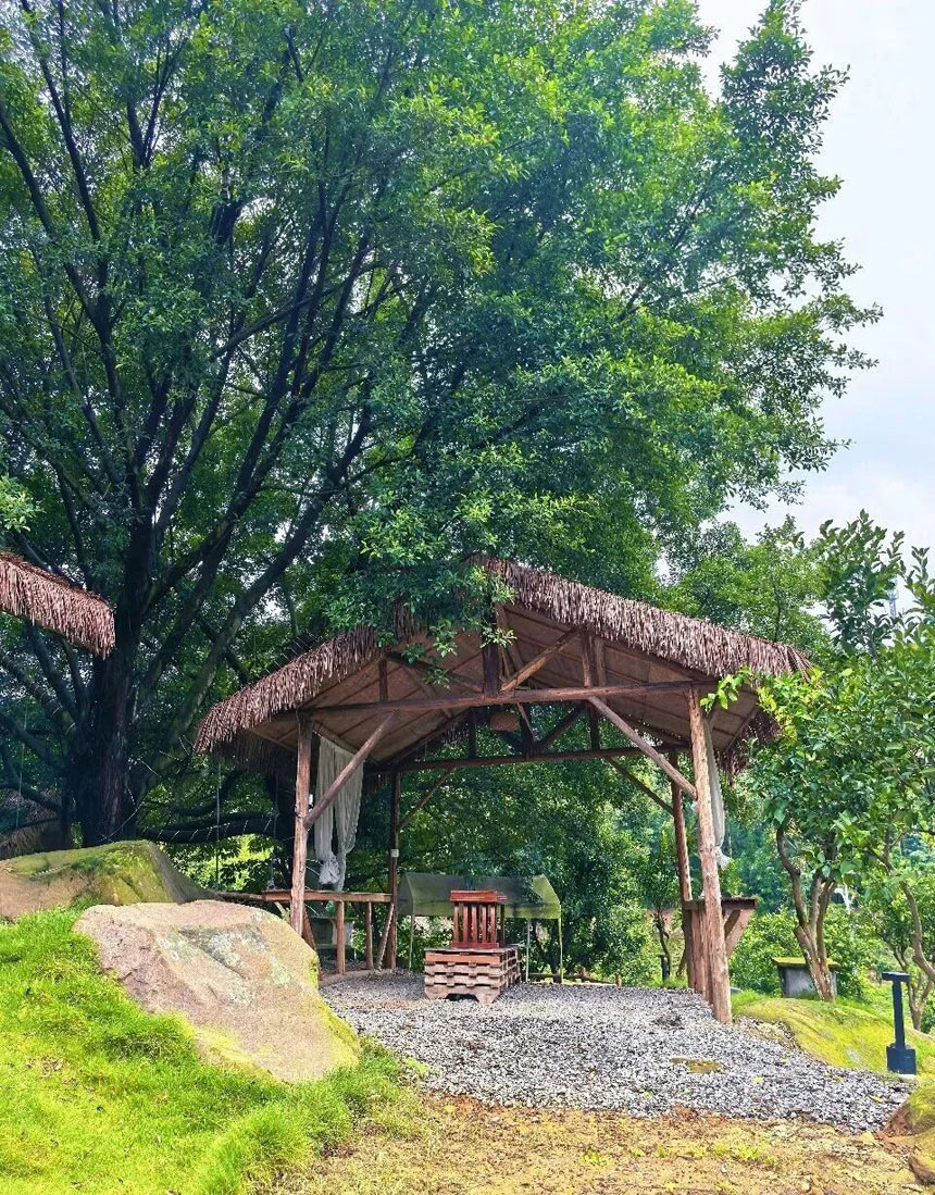 原来这个亭子叫竹棚,超喜欢这个竹棚,竹棚下面就是小朋友们烤板栗🌰、烤红薯🍠、烤爆米花🍿的原木食记。
