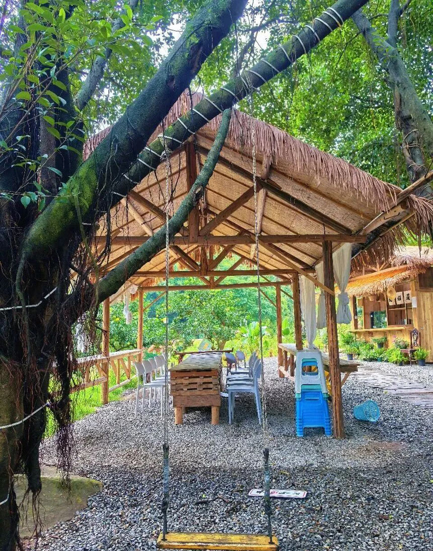 旁边几颗大树下可坐着喝茶聊天,可荡秋千,人生何求啊!!