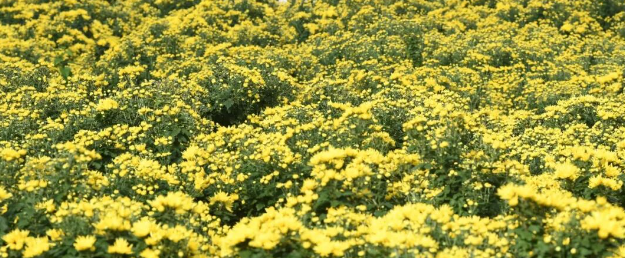 金丝黄菊齐齐绽放,层层叠叠的花瓣裹着暖黄的蕊,风一吹,花海便翻涌着“金浪”,连空气里都飘着清甜的菊香。