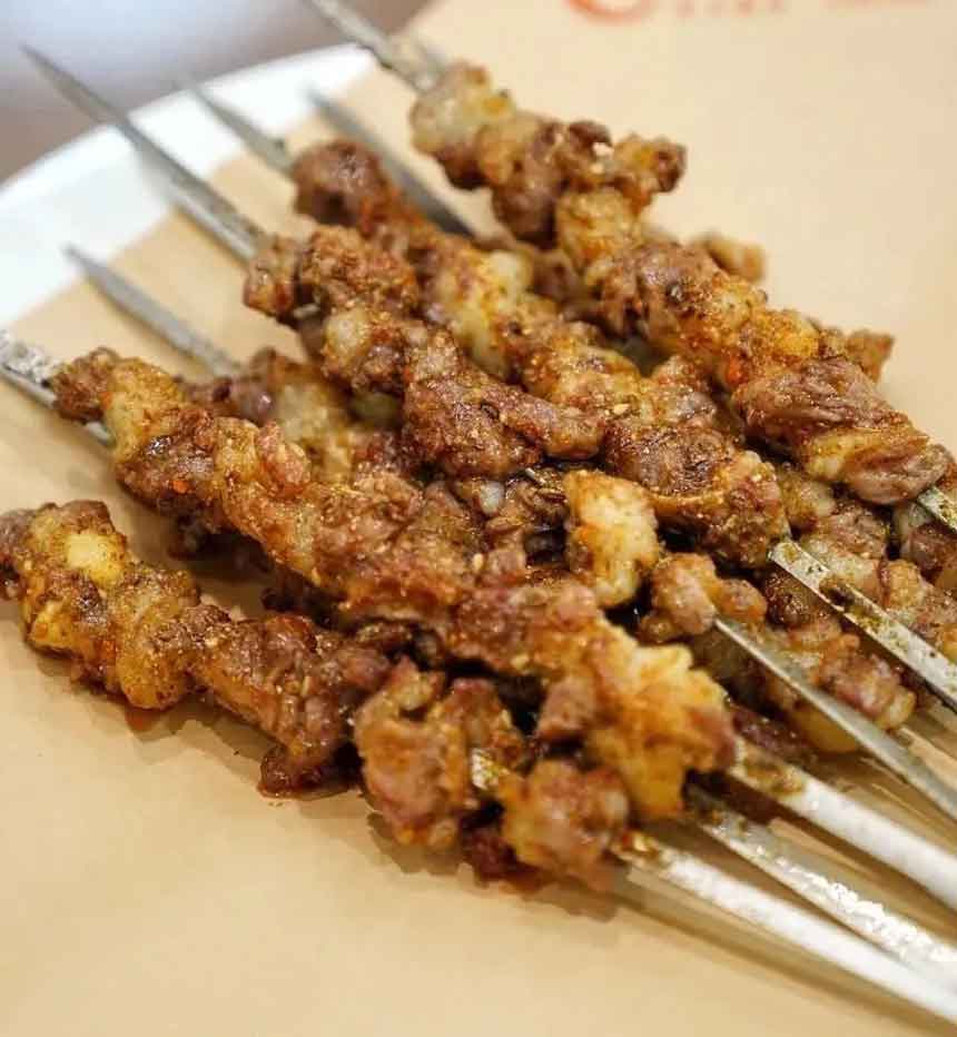 自助烧烤(14种肉+6种菜,羊肉串一次炫10串不心疼,真材实料的肉串过炭火一烤,很易熟,薄薄的肥肉脂肪吃起来香气无限回味,入口即化,丝般顺滑。