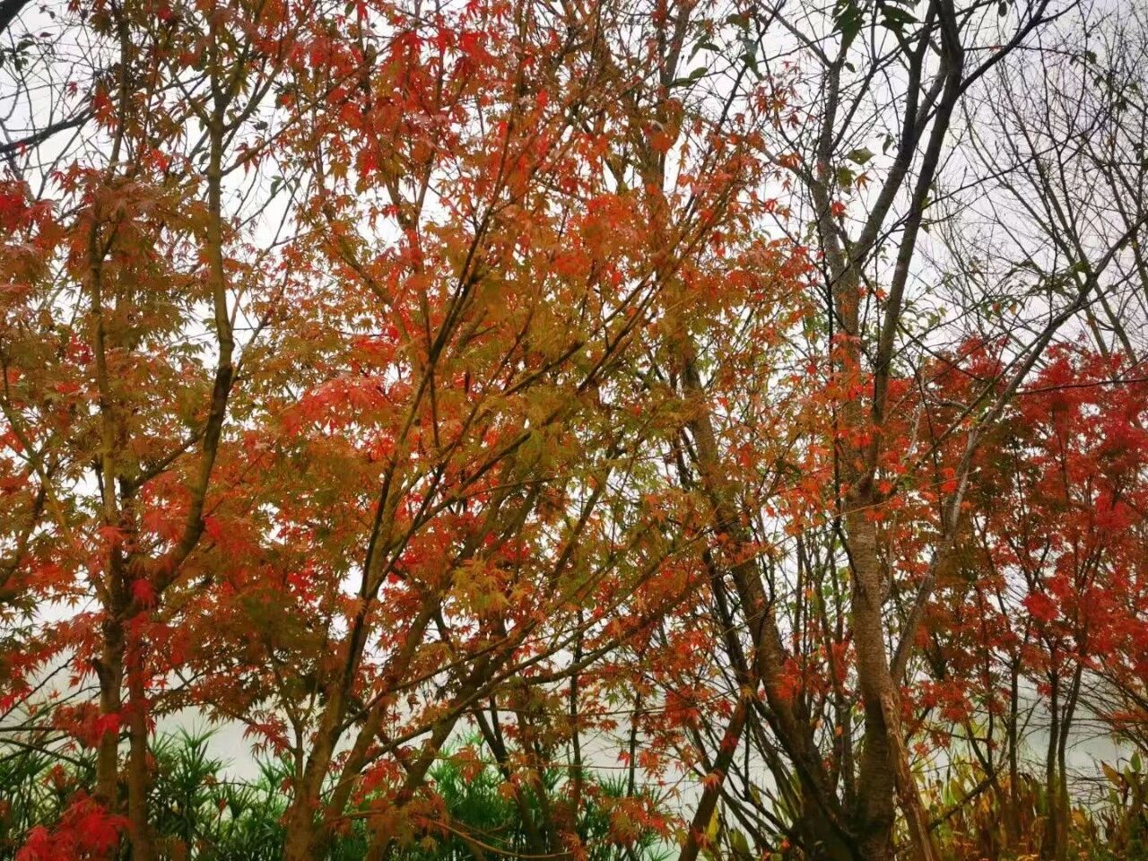这里盛开着超大片芙蓉花上行的小路两旁开满了密密匝匝的花朵,灿烂如锦 这里花多人少可以先导航“鹿山公园”就在旁边约6分钟路程并且鹿山公园的枫叶也红了哟!